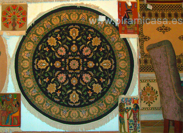 No existen los tapetes y alfombras voladoras, pero con su imaginación puede volar por la infinidad de diseños que le ayudaremos a plasmar en imagen, a fin de que los artesanos -mejor dicho artistas- con la más larga tradición familiar en la elaboración de alfombras de Egipto, puedan hacer realidad palpable los dibujos sobre los que volarán sus pies. No sólo podemos diseñar sobre motivos de grabados egipcios, pues en realidad es posible hacer los diseños sobre cualquier tipo de imagen.