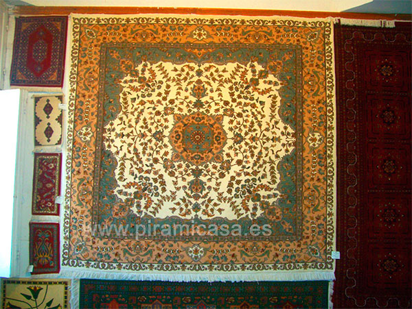 Disponemos de un amplio surtido de Alfombras de lujo, tanto de modelos ya confeccionados, completamente elaborados en telares manuales por artesanos de El Cairo y otras localidades de Egipto, así como podemos diseñar de acuerdo a sus gustos personales, cualquier tipo de dibujo y en alfombras y tapetes de considerable tamaño. Las piezas unitarias pueden ser desde 2,1 metros, por el largo que se desee, hasta piezas unidas para alcanzar los anchos deseados sin que se note costura alguna.
