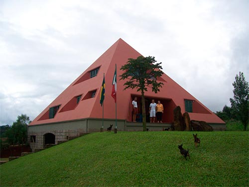 Casa Piramidal Construida por José en Criciúma, Santa Catarina, Sur de Brasil. Se encuentra a la venta porque su propietario desea construir otra a varios kilómetros de allí, más cerca de sus parientes y familiares.