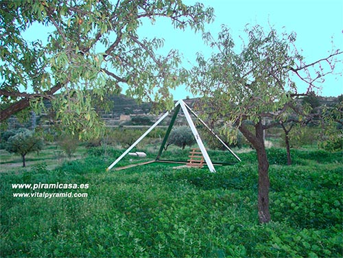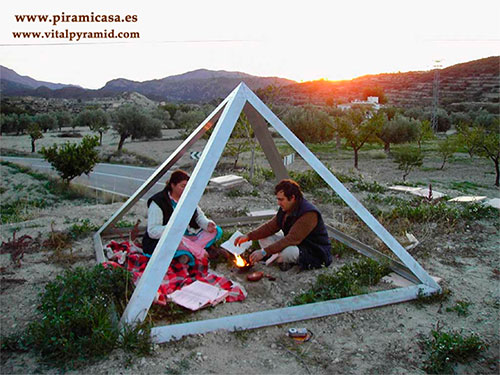 Esta pirámide ha sido usada para la práctica de Agni Hotra ( o Agnihotra) que está dando excelentes resultados en muchos países. Para los conocedores de esta técnica de estimulación bioenergética de los campos, se utiliza casi la misma que hemos usado para los tomates, aunque se hace en 2,5 metros de base. En este páramo, donde los almendros apenas estaban dando fruto, tras la práctica del Agni Hotra y sin que hubiesen mejorado las condiciones climáticas, los almendros dieron una cosecha como jamás se había visto, en un radio de quinientos metros. Nuestro equipo científico no tiene medios para explicar el porqué del éxito del Agni Hotra, pero el experimento tuvo resultado innegable. Se repitió dos años después con idéntico resultado, a pesar de la sequía que afectaba a la región en esos años.